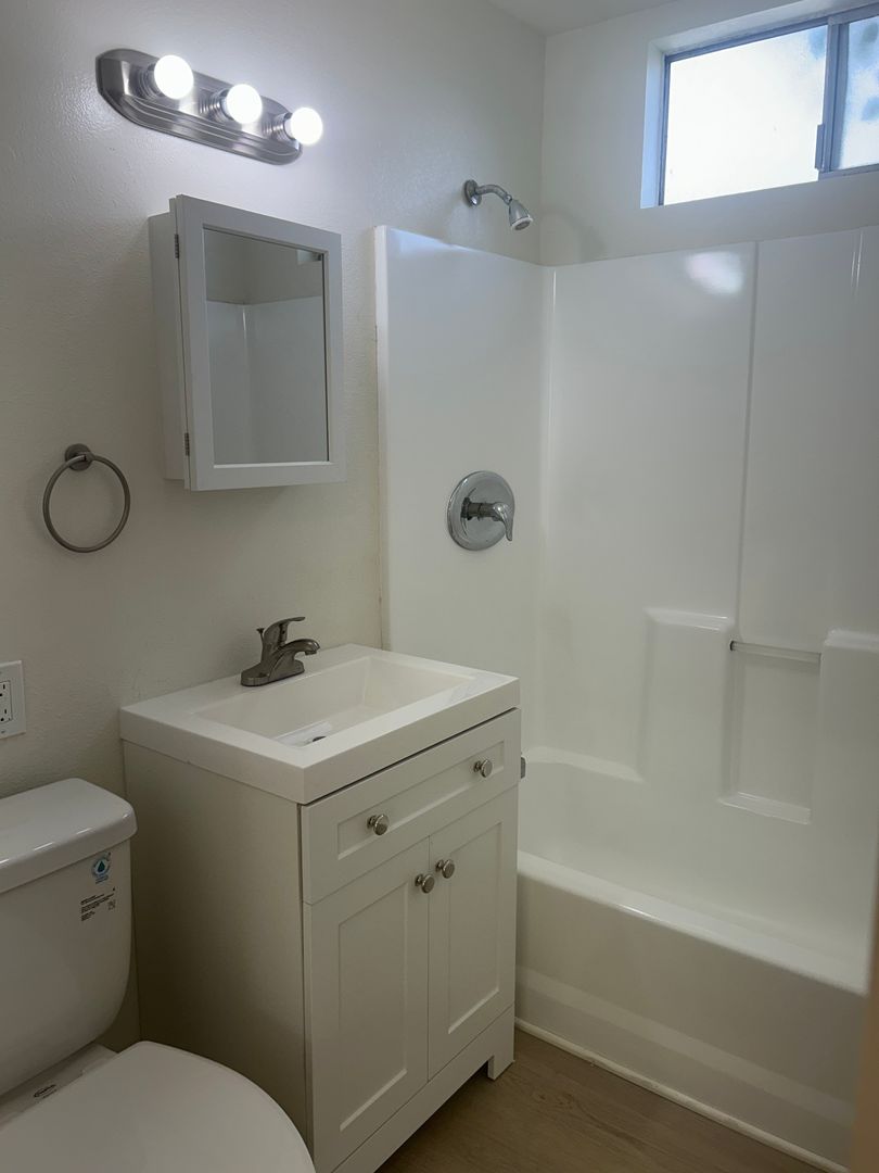 Two bedroom one bath downstairs apartment. New stainless steel appliances, remodeled bathroom, new vinyl flooring throughout. Storage unit, washer dryer onsite, two parking spaces.